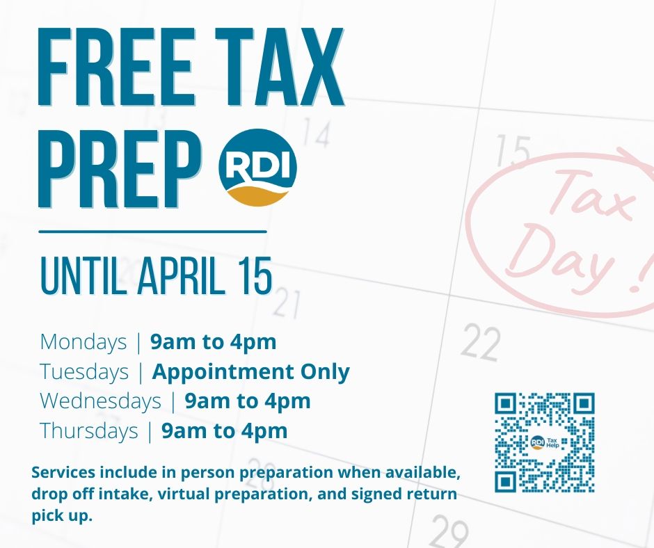 - Tuesdays by Appointment only at https://bit.ly/rditaxhelp